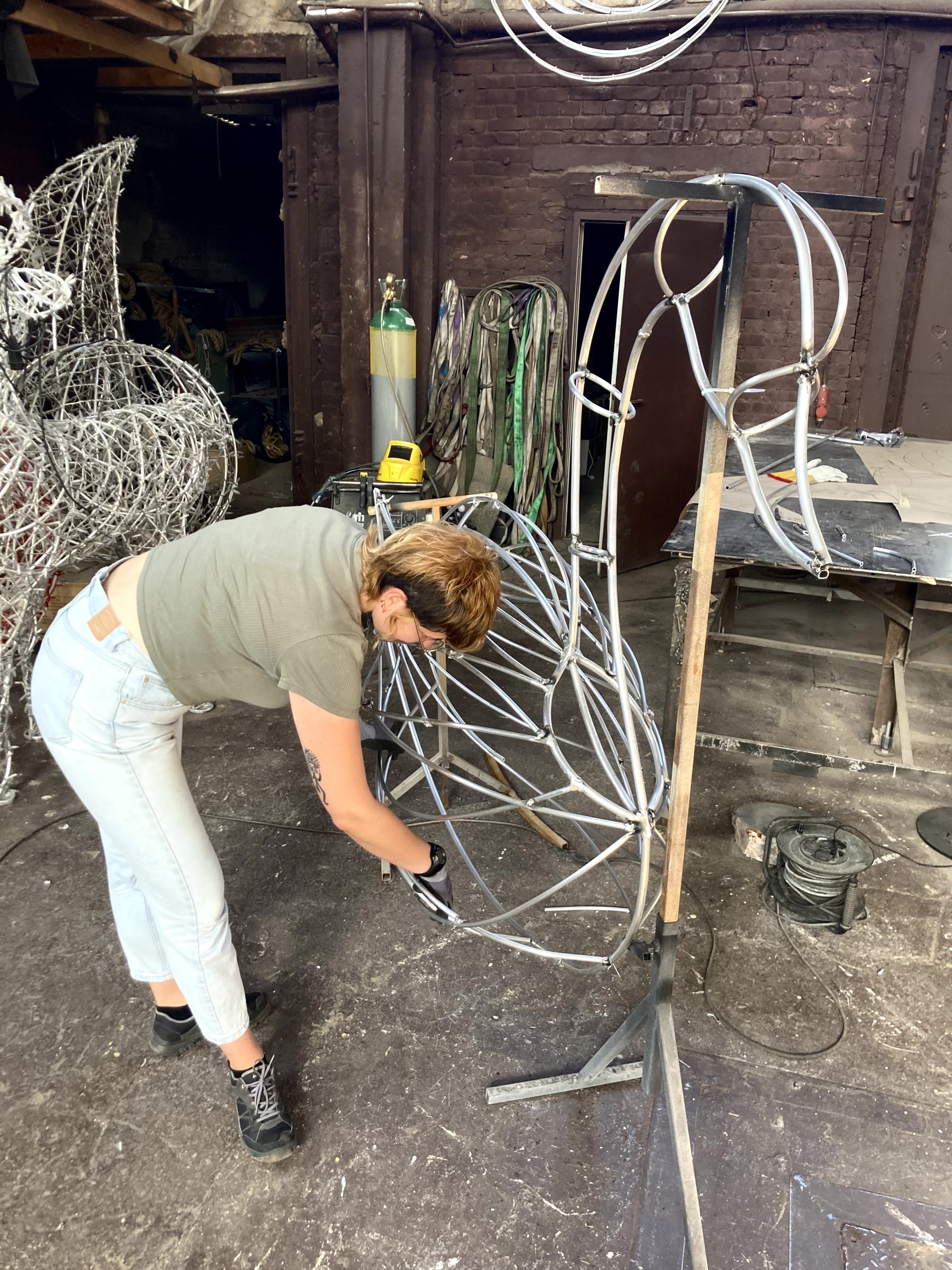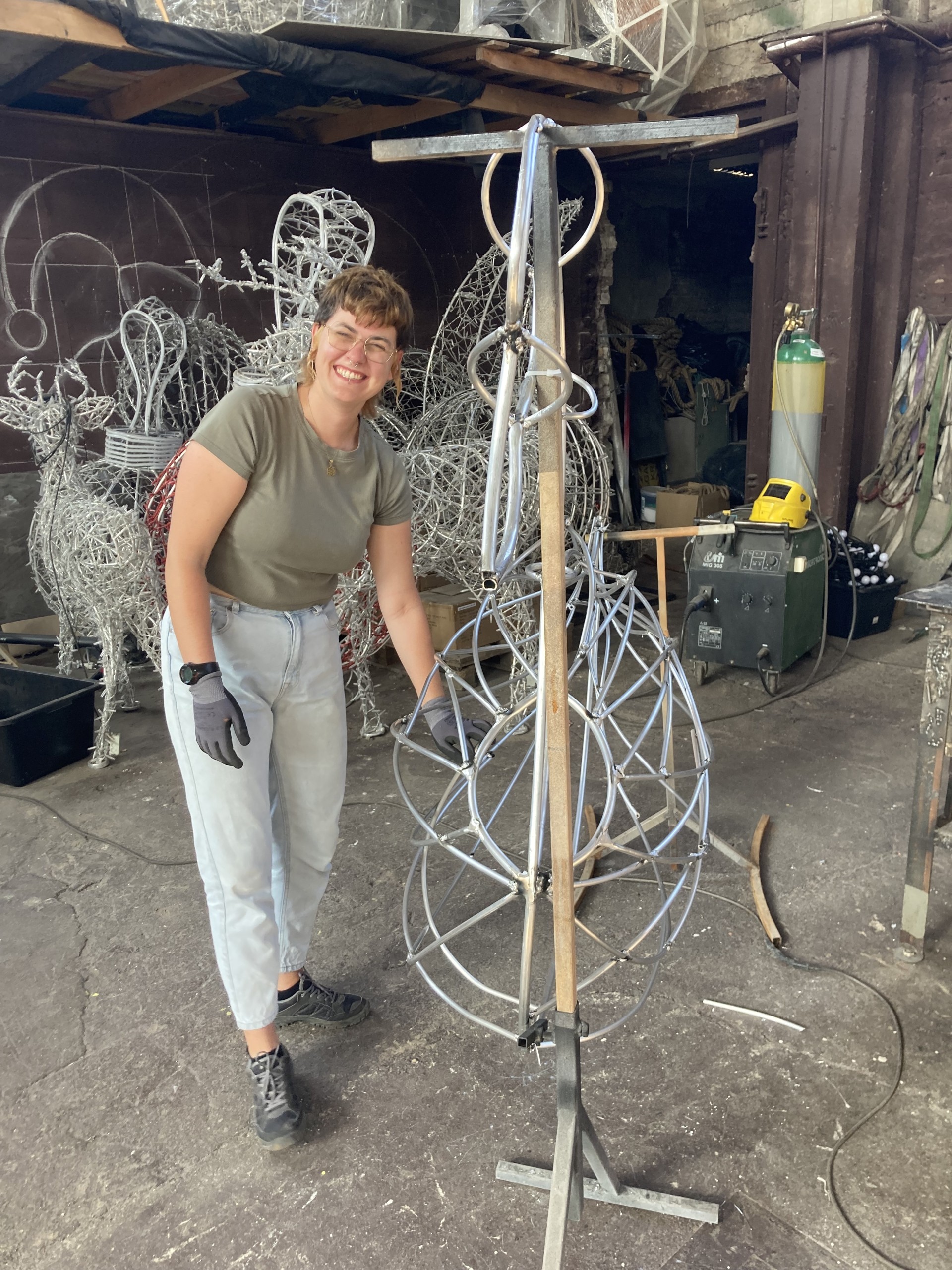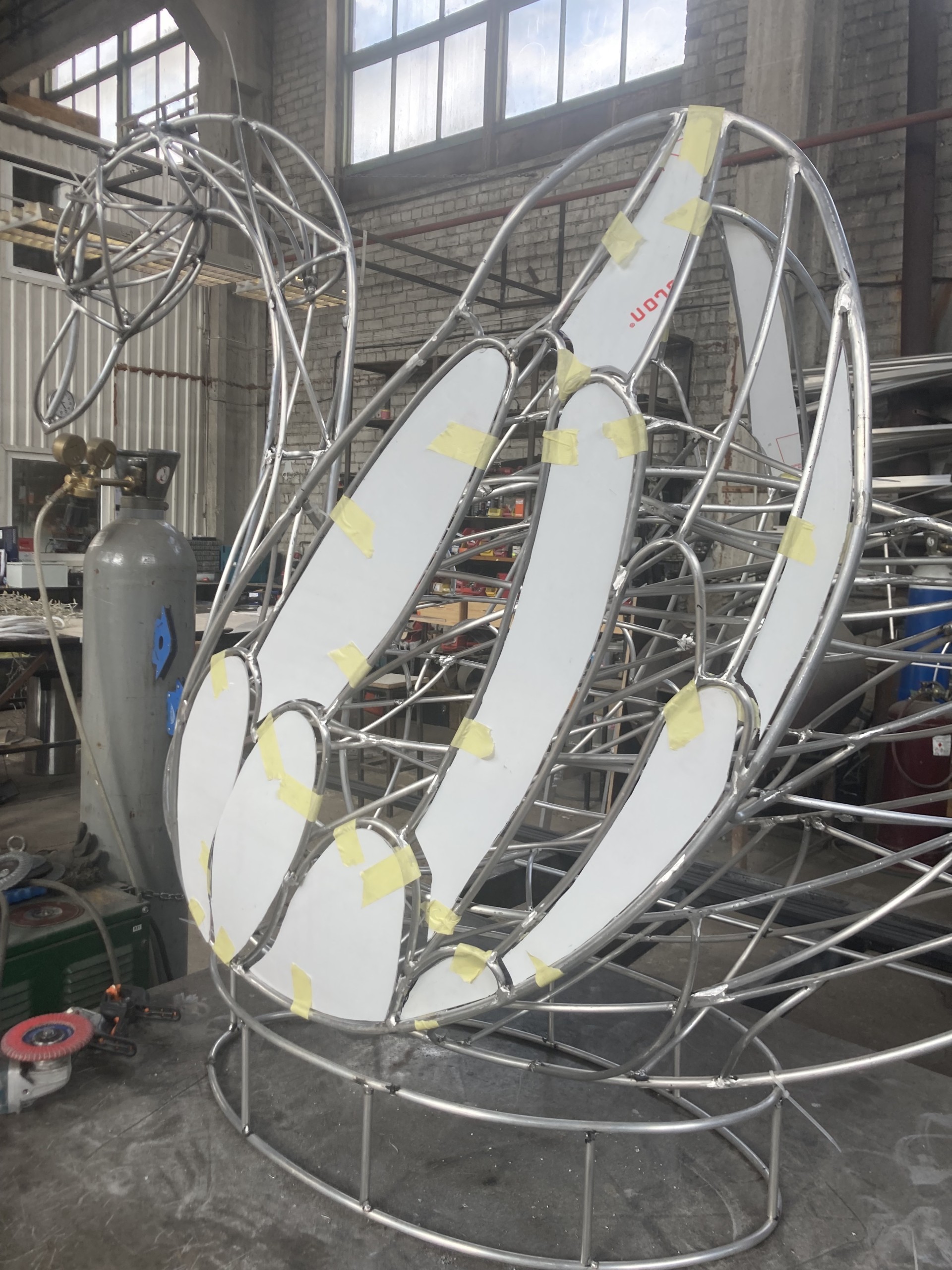 A més, també va participar en el procés d’execució dels projectes, realitzant tasques com tallar, cosir i fins i tot aprendre a fer vinils. L’últim projecte en què va treballar va ser el del cisne, on va aprendre a soldar alumini al taller. En aquest projecte final, va tenir llibertat creativa per dissenyar i executar el treball segons la seva pròpia visió, una experiència que valorar molt positivament.